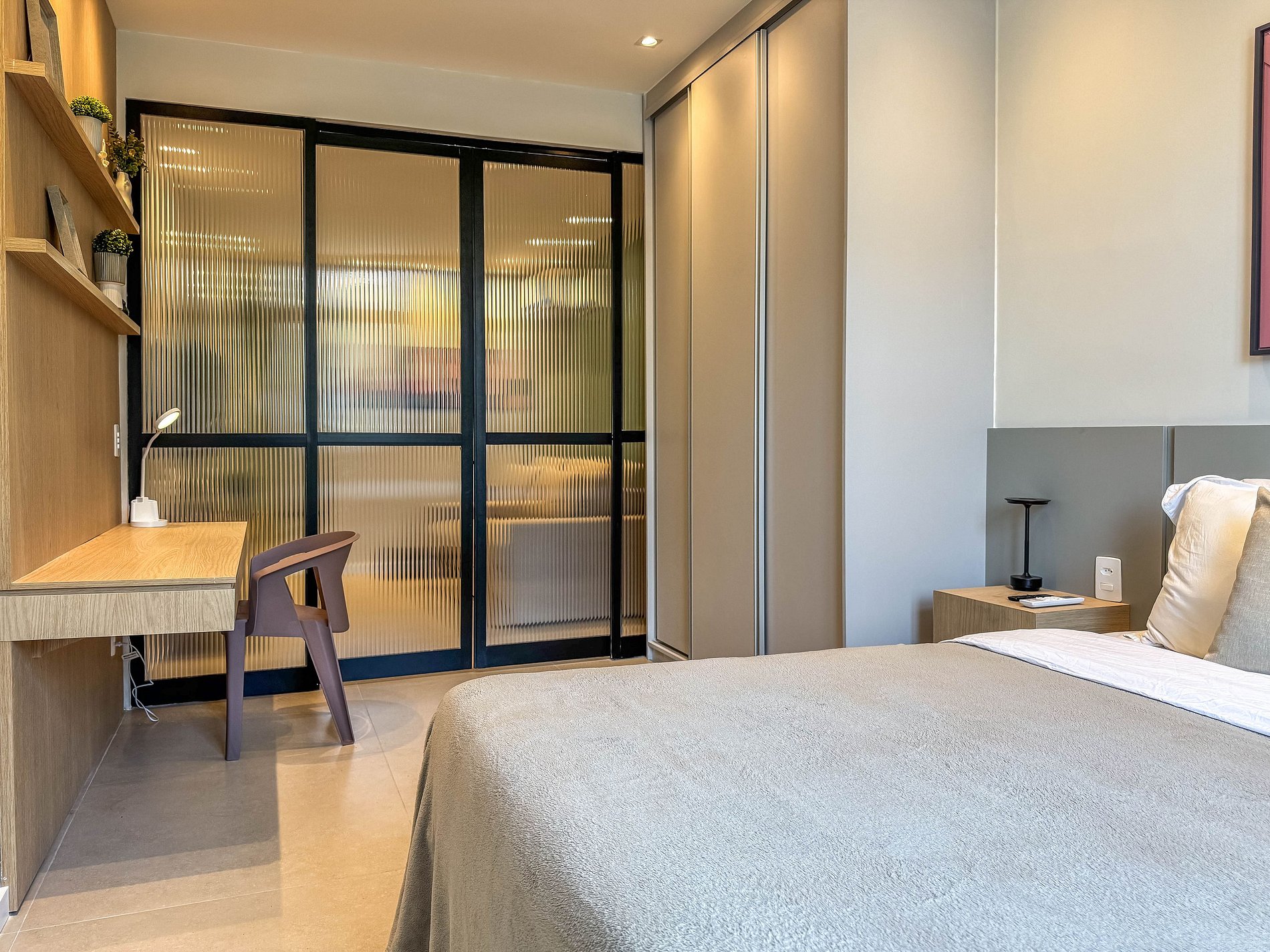 Quarto acolhedor e funcional;