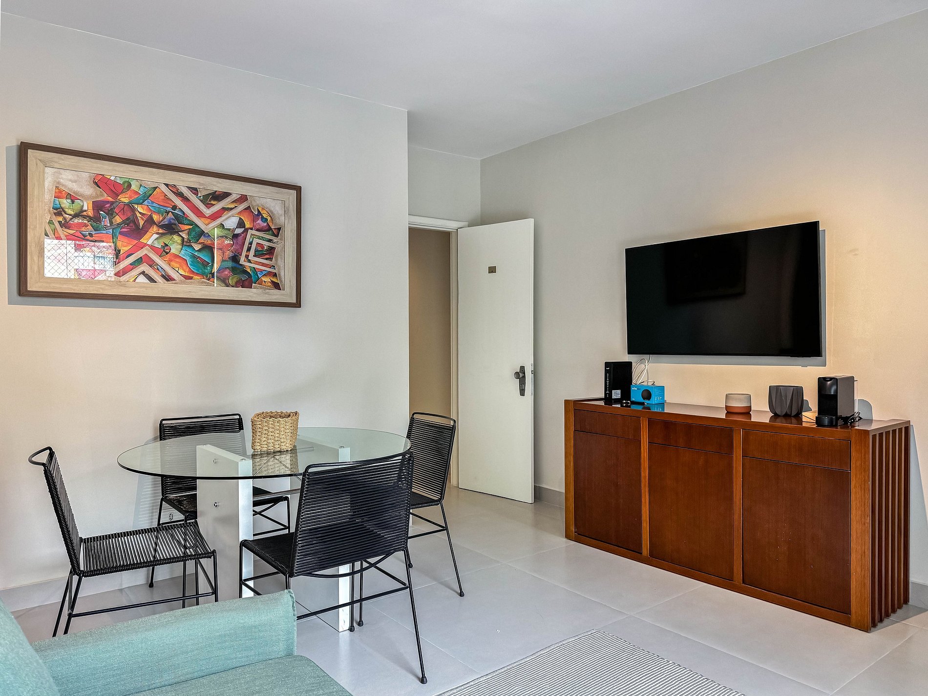 A acomodação conta com ar condicionado e Smart Tvs na sala e nos quartos, as TVs já estão logados aos principais streamings disponíveis no Brasil, como Netflix, Prime Vídeo, HBO Max, Disney Plus e Apple Tv.