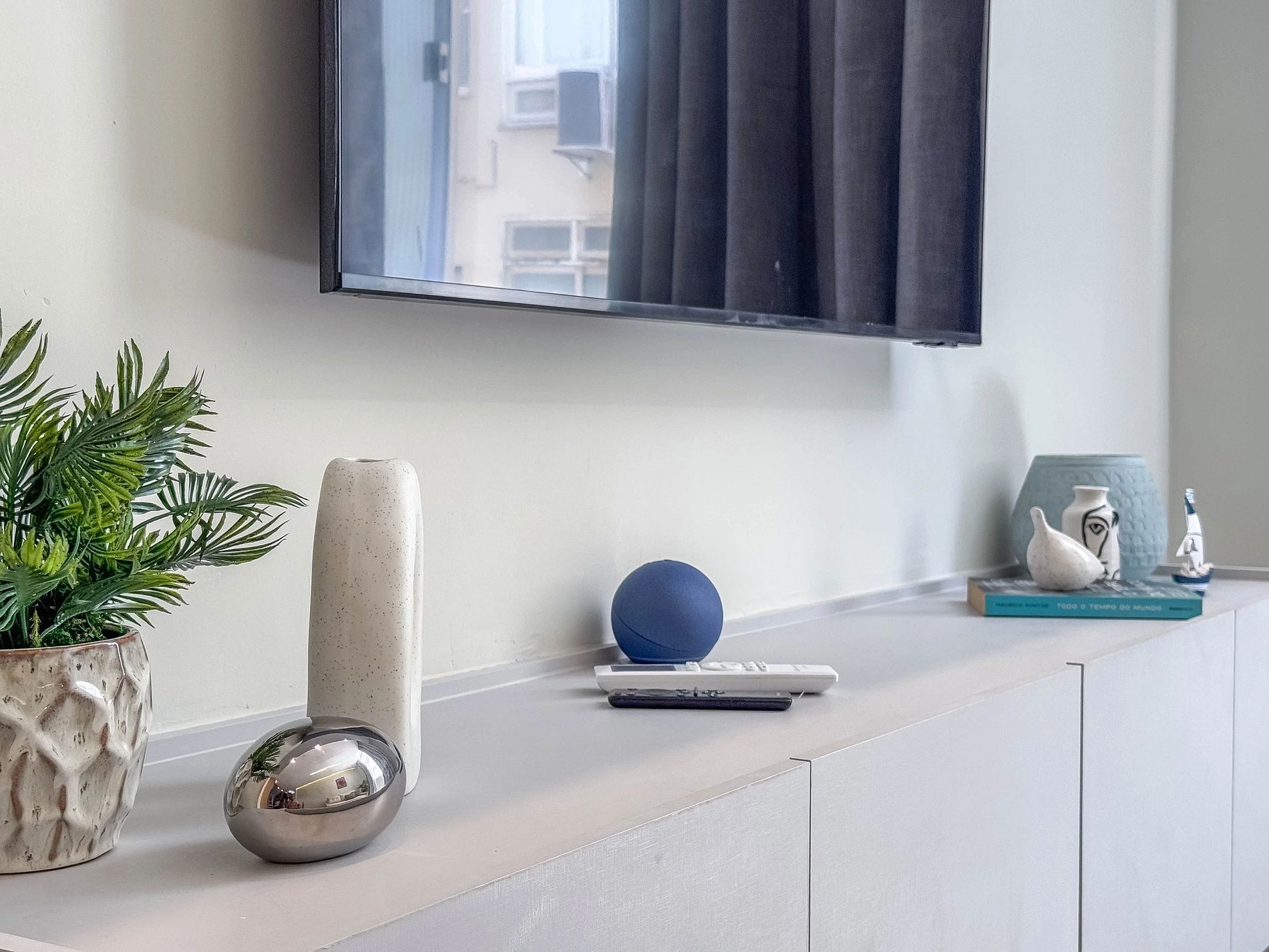 A iluminação e climatização da sala é toda comandada por voz, via Alexa.
