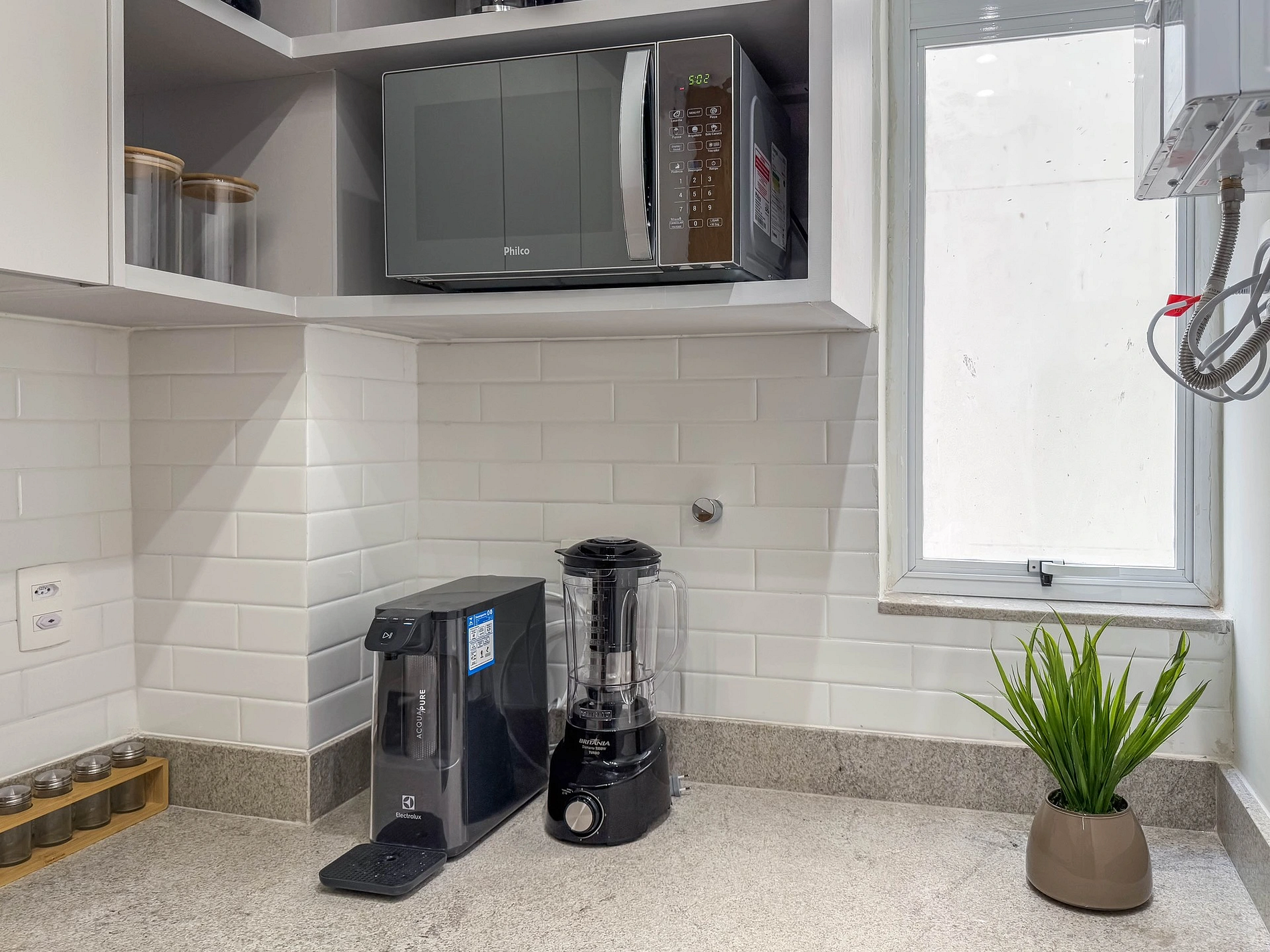 Na cozinha, o hóspede contará com vários temperos para ajudar na hora de cozinhar.